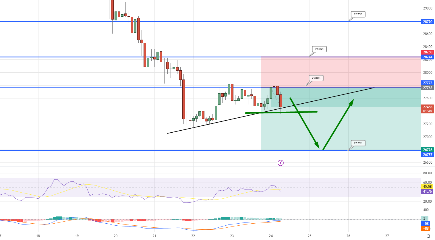 Should it breach this barrier, it may come up against resistance at $28,500 and $28,800 before potentially reaching $30,000.