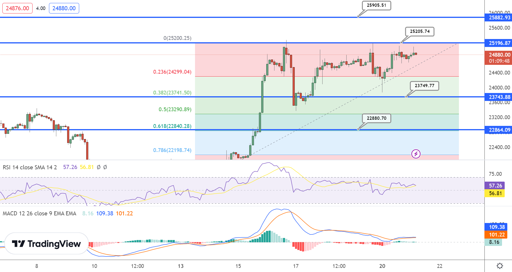 Bitcoin's technical outlook hasn't changed a lot as BTC has been trading in a narrow range between $23,700 and $25,200. The immediate resistance level for the BTC/USD pair is currently at $25,200, and a break above this level could push the BTC price toward $26,000.
