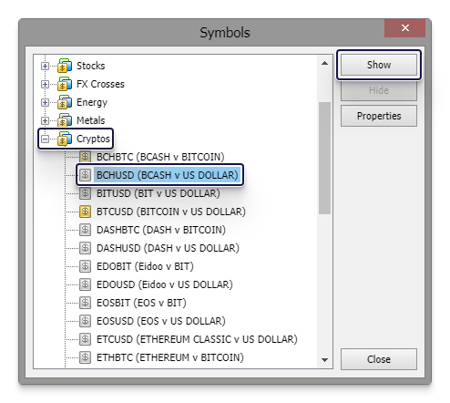 Right clicking on the instrument within the ‘Market Watch’