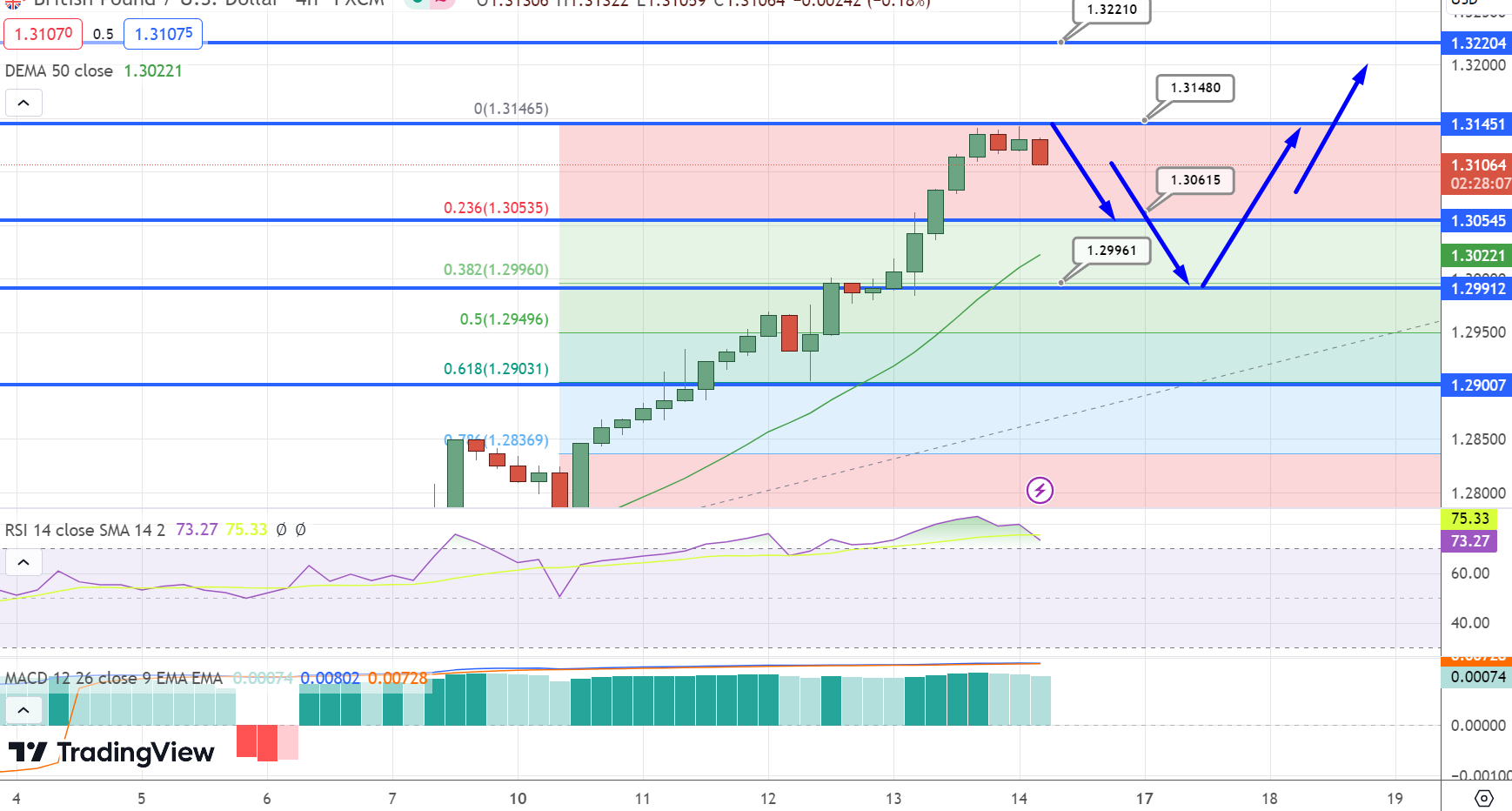 Therefore, while maintaining a predominantly bullish outlook, it is crucial to monitor the price's behavior around the support level at 1.31451. A break below this level may signal a shift toward bearish sentiment.