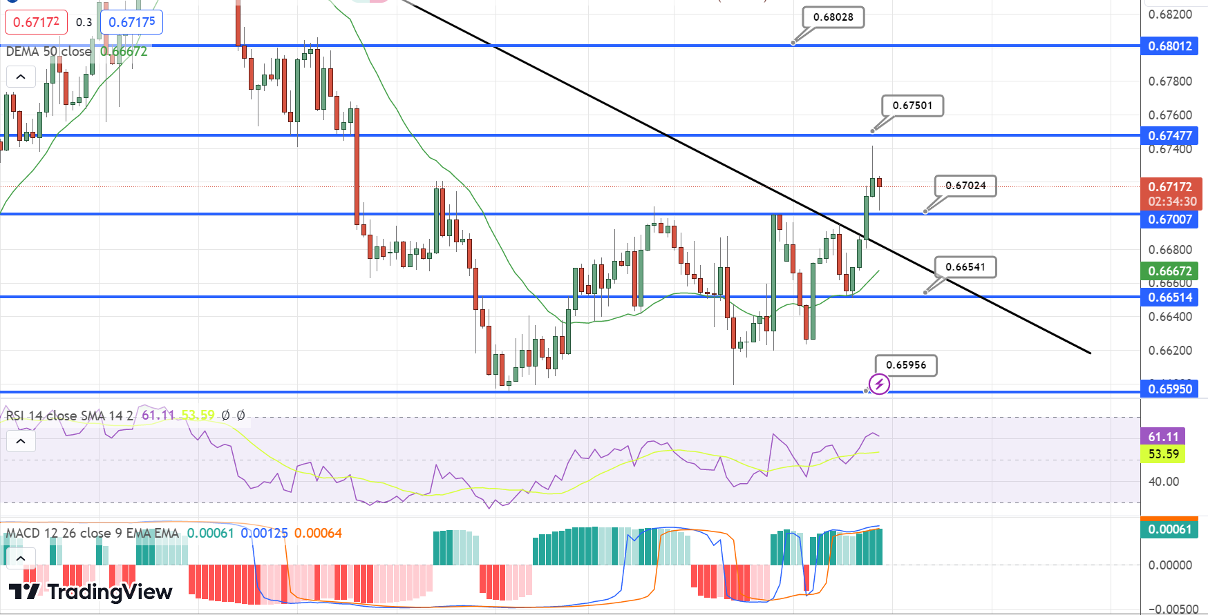 For today's trading, the projected range is expected to be between the support level at 0.6640 and the resistance level at 0.6750.