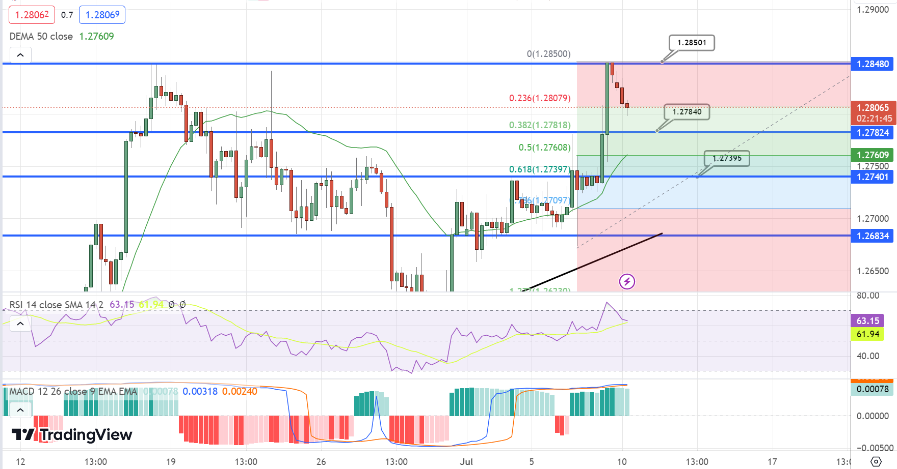 For today's trading, we anticipate the price to move within a range of support at 1.2640 and resistance at 1.2820.