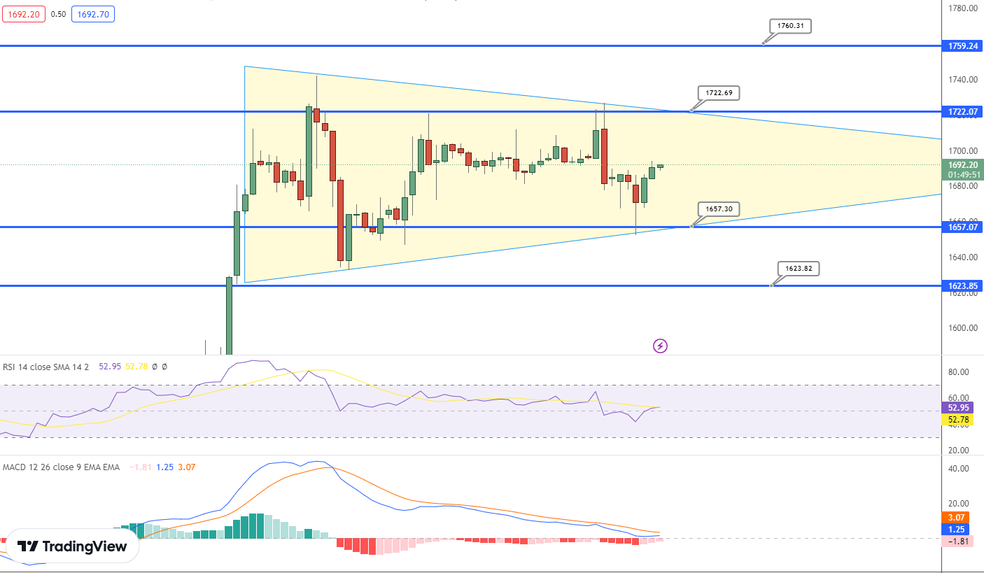 ETH/USD is currently trading at $1,683.5, reflecting a 0.71% decrease in the last 24 hours. However, its value has increased by more than 11% in the last seven days. While the price of Ethereum has been consolidating within a range, there are indications of a potential bullish momentum.