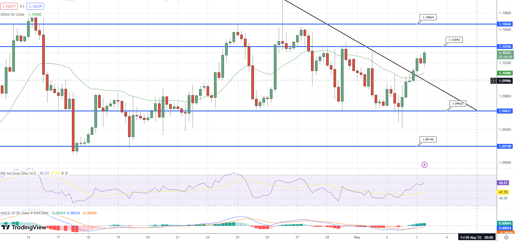 * EURUSD broke 1.1000 level, indicating a bullish trend towards 1.1075 and possible gains up to 1.1150.