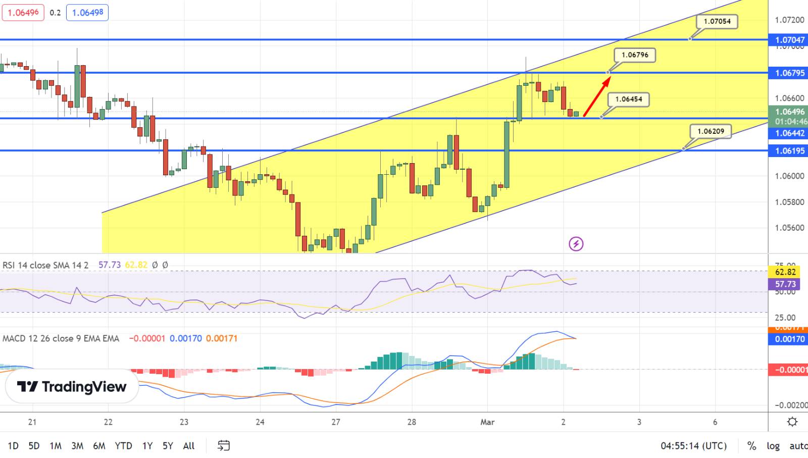 If the pair breaks above the $1.0680 mark, it could move toward the $1.0705 level, with further bullish momentum potentially leading to a breakout above $1.0735.