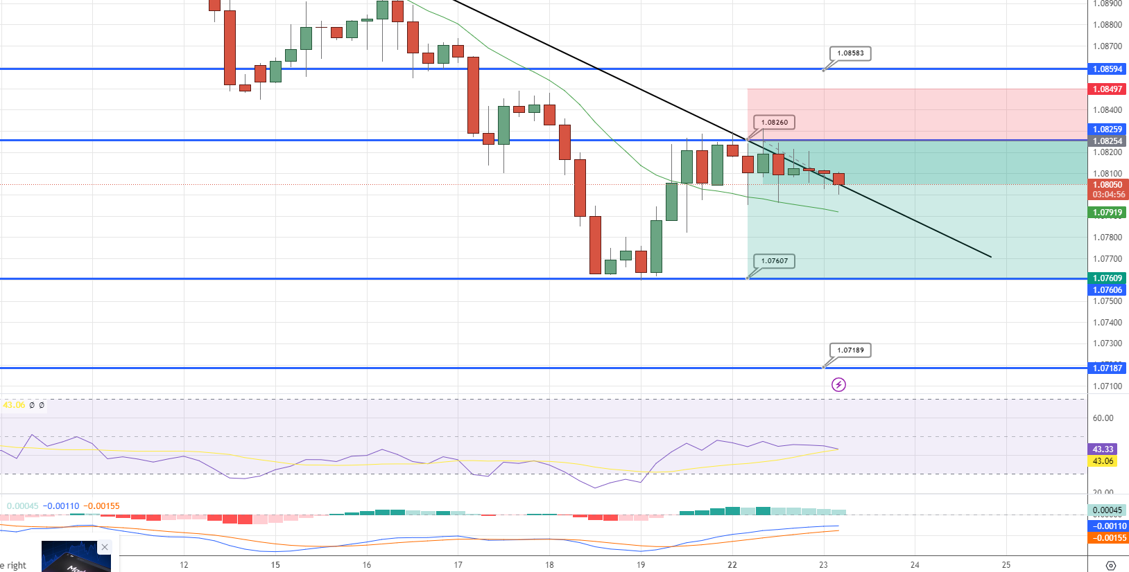 Therefore, the recommended strategy for today is to consider selling below the 1.0825 level, with an initial target set at 1.0760. A stop-loss order can be placed around the 1.0850 level.