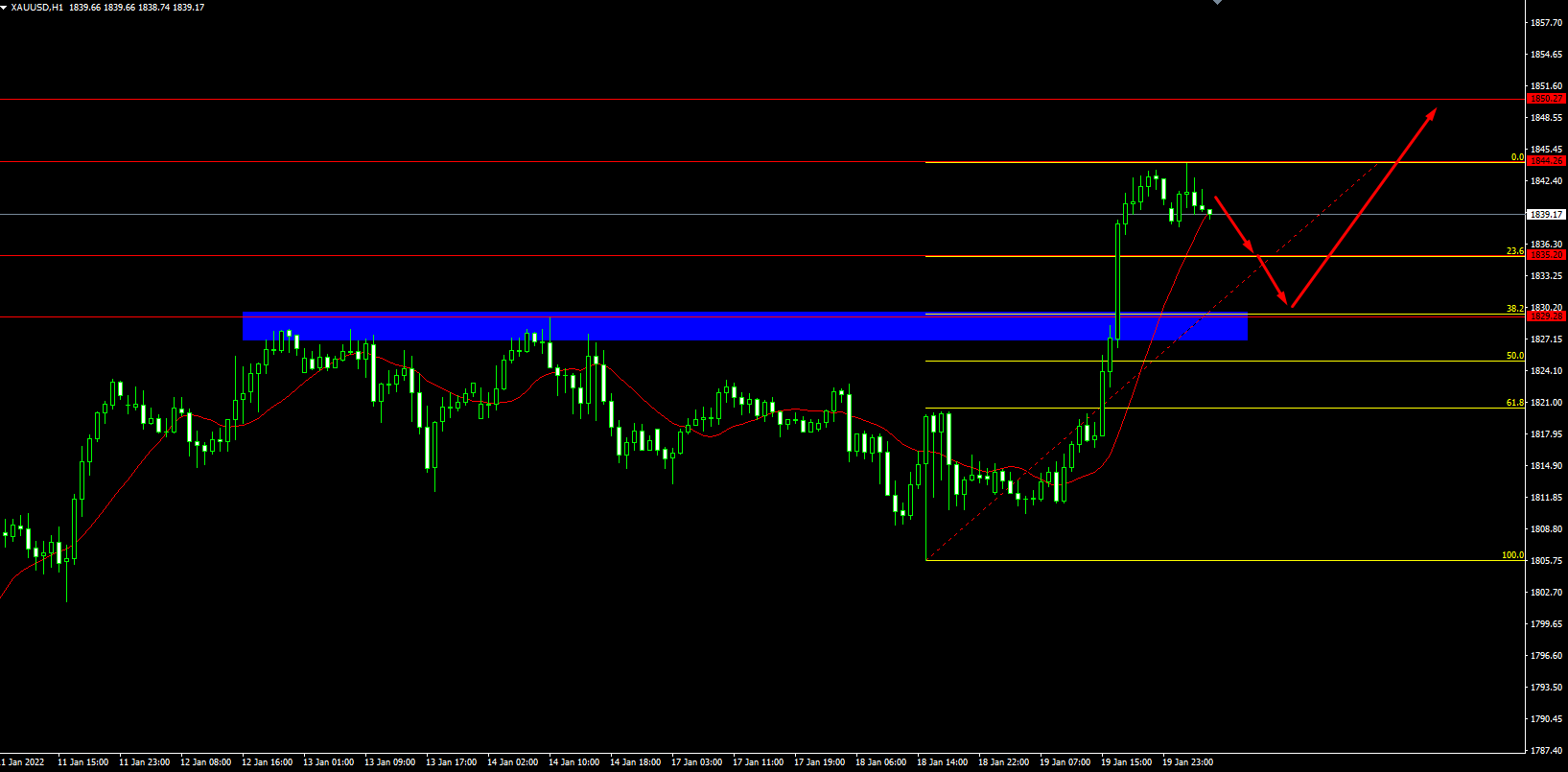 Recently, gold has been under pressure amid hopes that the US Federal Reserve will increase interest rates 3–4 times this year. The Federal Reserve of the United States will hold a policy meeting next week, and market participants were looking for clues about a rate hike timeline. This thing was keeping the US dollar higher in the market. However, on Wednesday, after the warning from the White House that Russia could attack Ukraine, the whole market mood turned negative. The risk-off market sentiment pushed gold higher due to its safe-haven status.