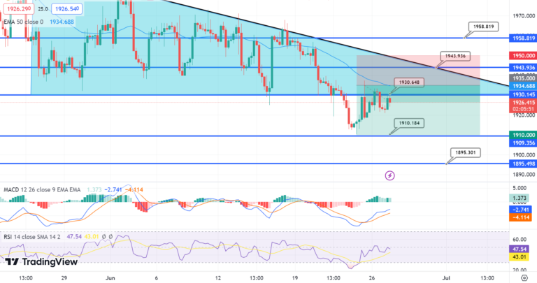 Gold prices took a downward dive yesterday, ending below the level of $1929.00 like a skilled synchronized swimmer. This keeps the bearish trend scenario in full swing, with a potential visit to the $1913.15 territory on the horizon.