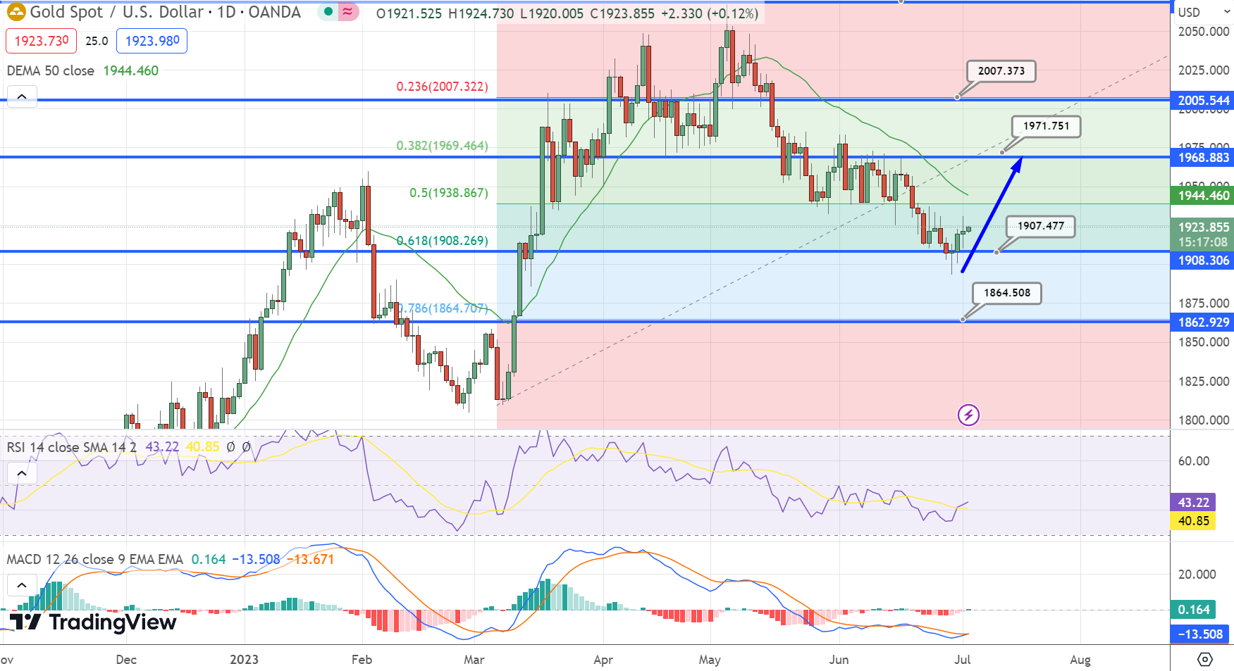 It is worth noting that a breach of $1,929.00 would likely propel the price towards further gains, with the next positive milestone at $1,945.20.