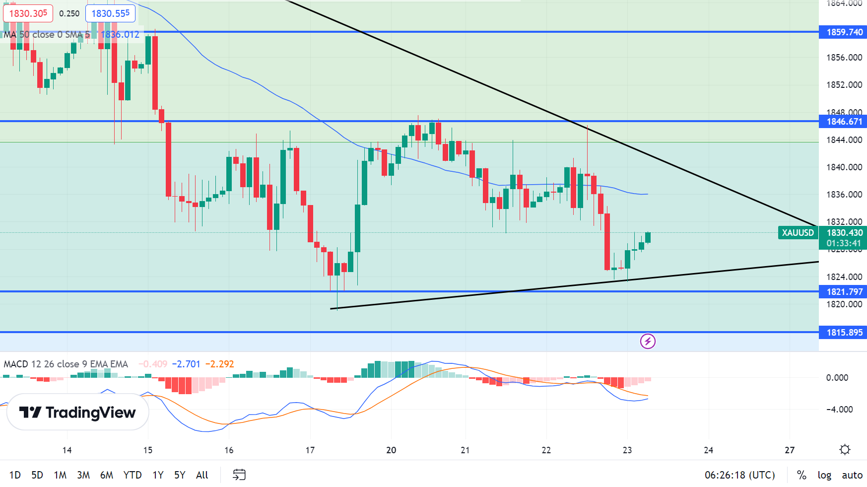 The XAU/USD pair is currently trading at approximately $1,820, and following the recent release of the Federal Open Market Committee (FOMC) meeting minutes, the price of gold has entered a downward trend, experiencing a sell-off.