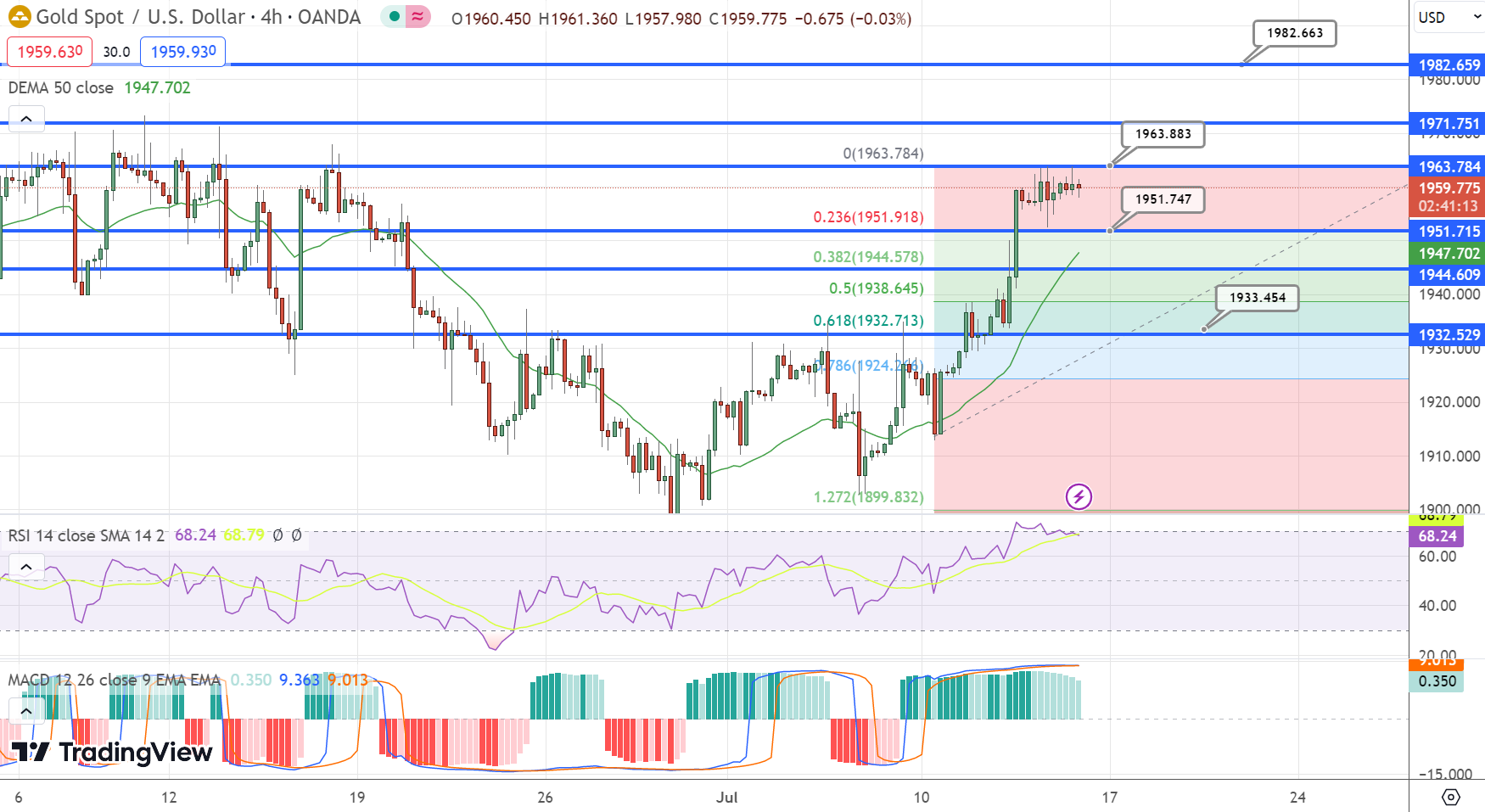 After a resilient rally that brought the gold price (XAU/USD) close to $1,960.00 on Thursday, the market is currently exhibiting a lack of clear direction. Despite the June report on the Producer Price Index (PPI) indicating a slowdown in household demand and the maintenance of the 2% inflation target, the precious metal has been unable to capitalize on these developments.