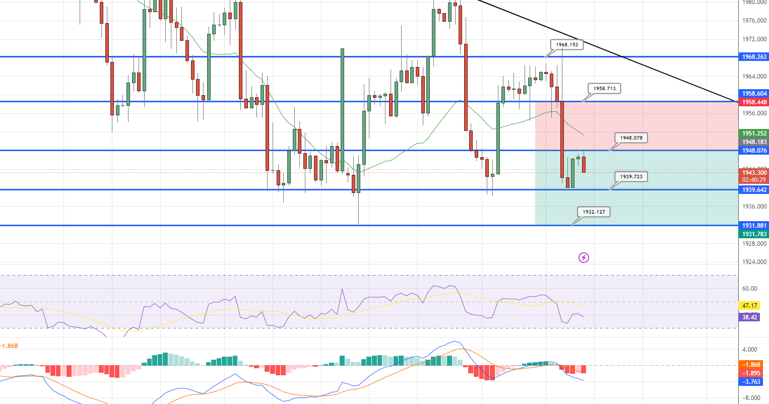 If gold breaks below the $1939 level, it could potentially reach the target of $1932 and continue its downward trend towards $1923 and $1990. On the other hand, if gold surpasses the $1948 level, the next target could be around $1955 or $1958.