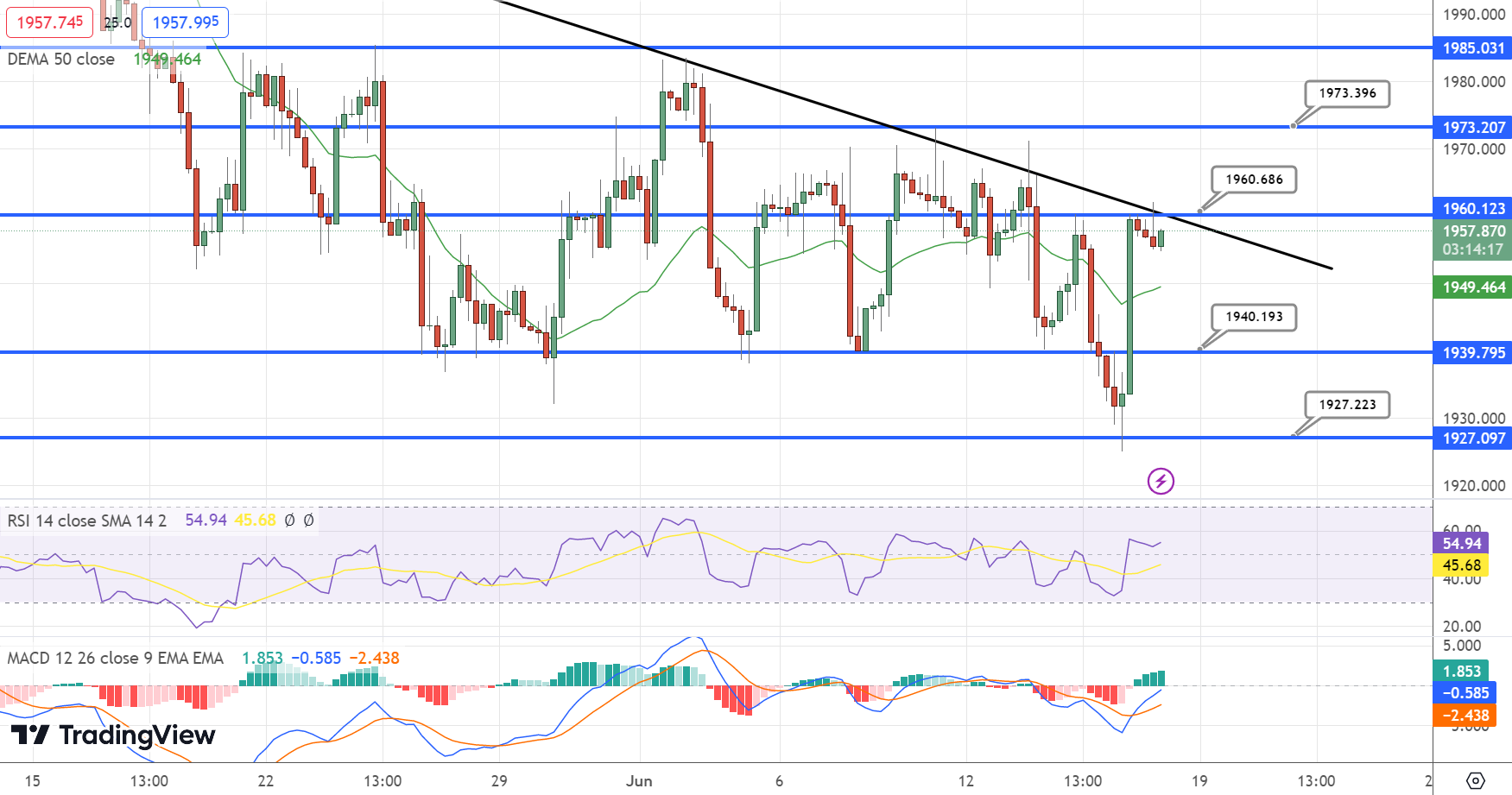 For today’s trading, we anticipate a range between the support level of $1,935.00 and the resistance level of $1,970.00.
