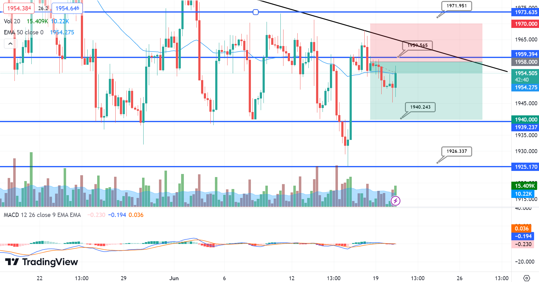 Today, we anticipate a trading range between the support level at $1,930.00 and the resistance level at $1,965.00. Let’s see if gold can break through and continue its bearish movement toward our next target!