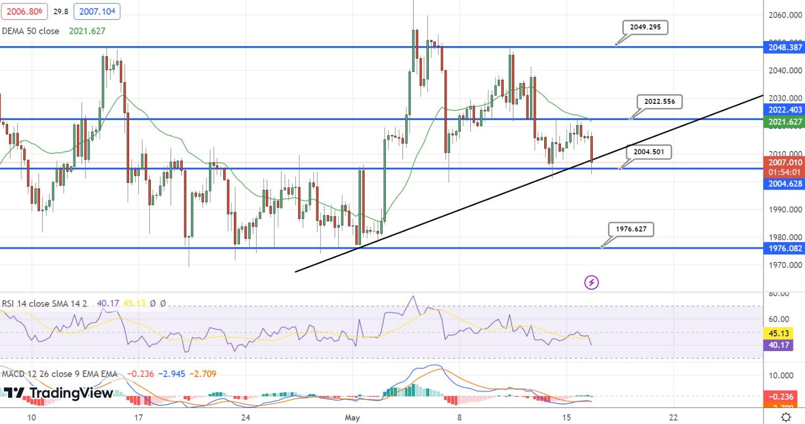 For today's trading session, market participants should anticipate a trading range between the support level of $1995.00 and the resistance level of $2027.00. Based on current market conditions, the forecast suggests a bearish trend for the day.