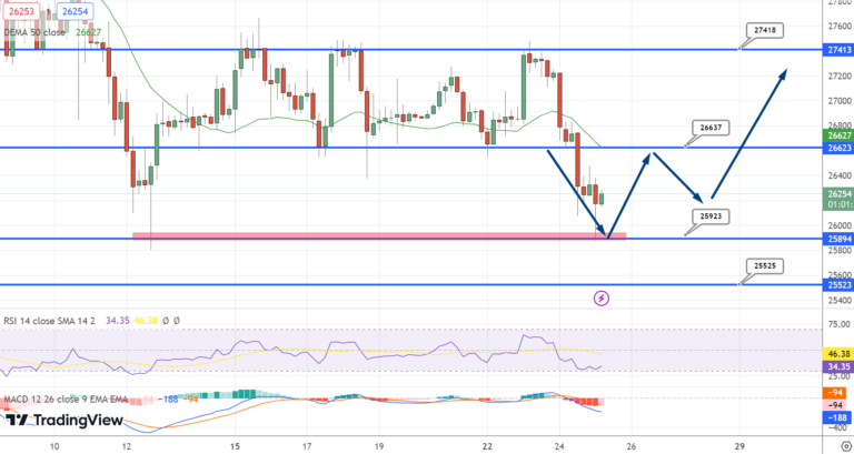 - Strategy for the day involves looking for a sell position below 26,600 with a take-profit around 26,000.