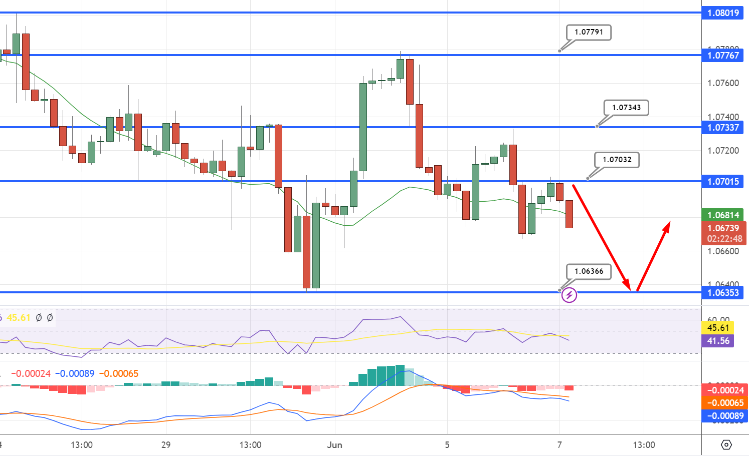 Nevertheless, if the Euro falls below the 1.0706 level, there may be an opportunity to short the EUR/USD pair. It is important to closely monitor the 1.0700 level, as a breach below it could present another opportunity to initiate a short position on the EUR/USD pair.