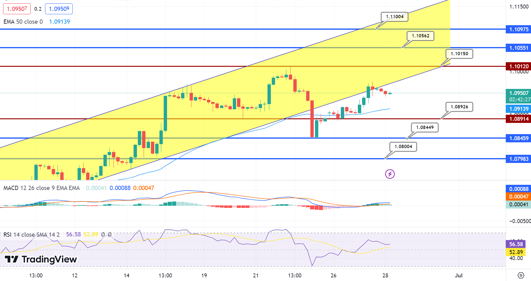 - The EURUSD pair confidently crossed the 1.0940 mark, strengthening our bullish outlook for future sessions.