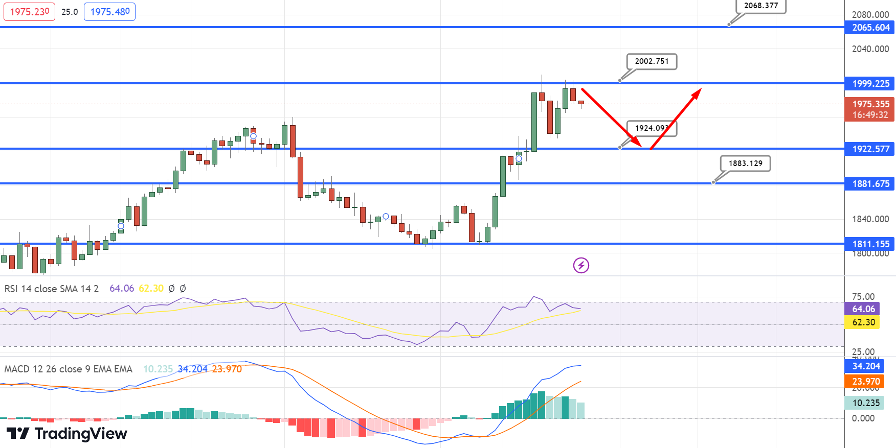 The targets for this correction would begin at $1,933.20 and extend to $1,885.90 once the previous level is surpassed. Today's expected trading range is between $1,960.00 support and $2,000.00 resistance.