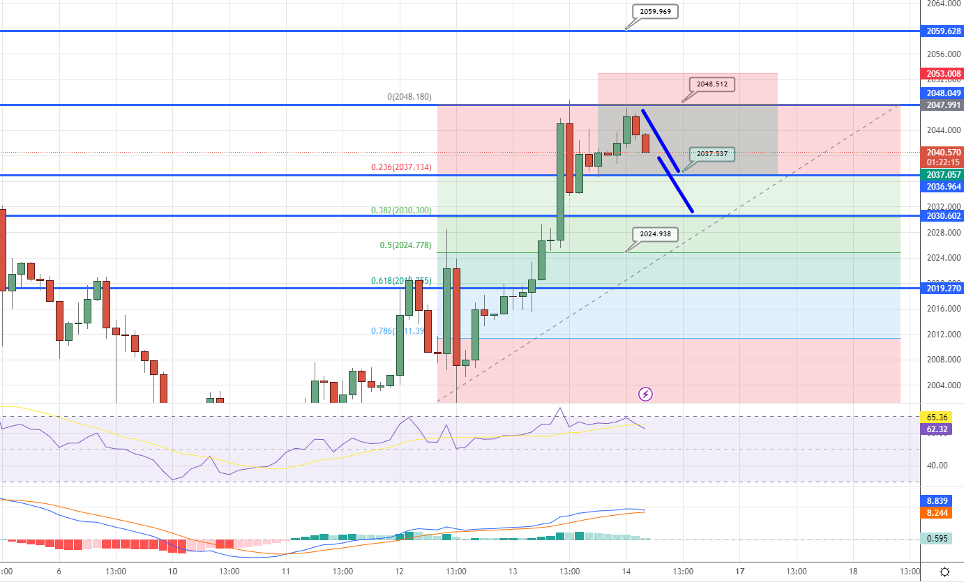 Our next target is set at $2,040.00, as we anticipate further increases in the short term and intraday basis.