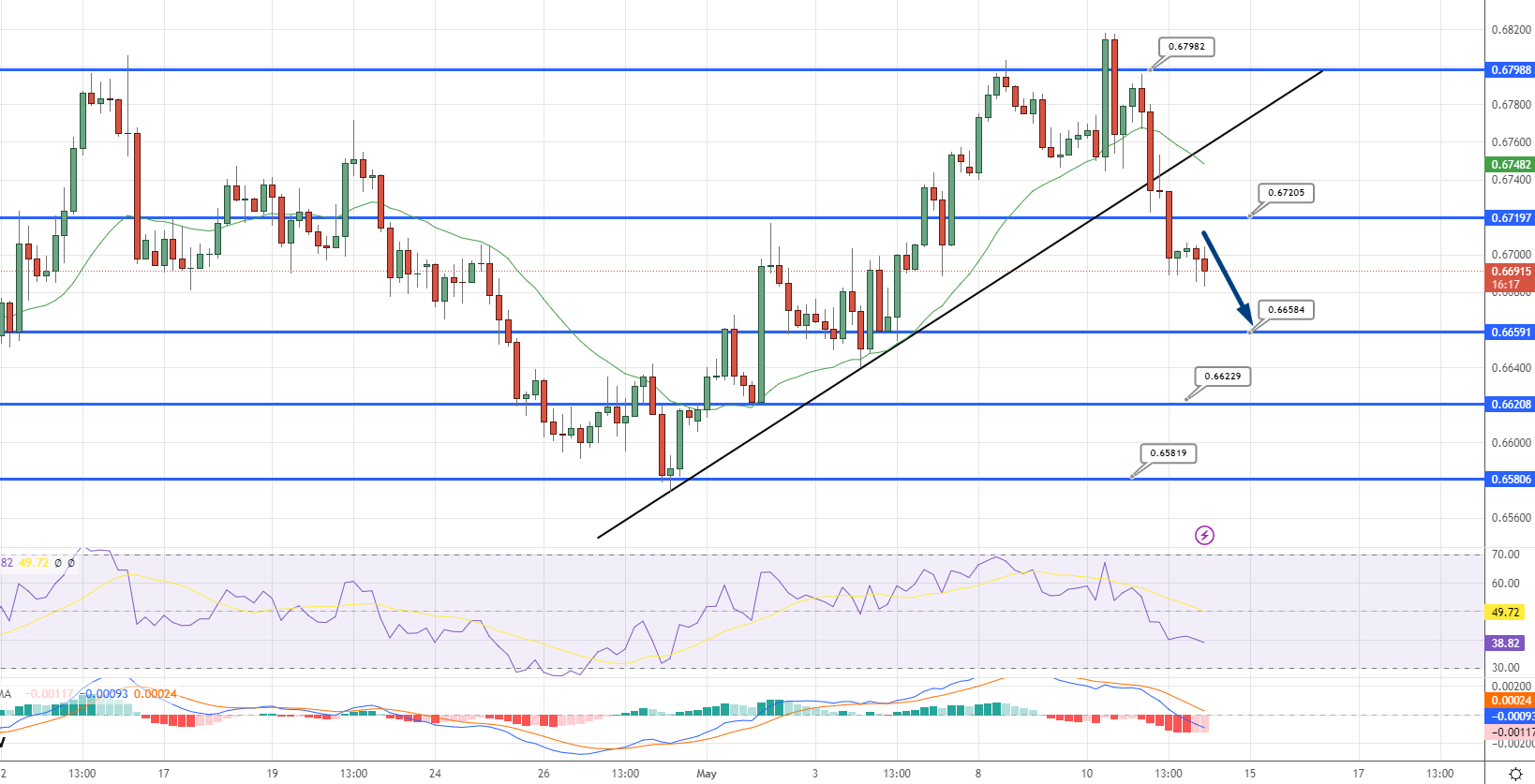 For today's trading, we expect the price to move within a range of support at 0.6610 and resistance at 0.6730.