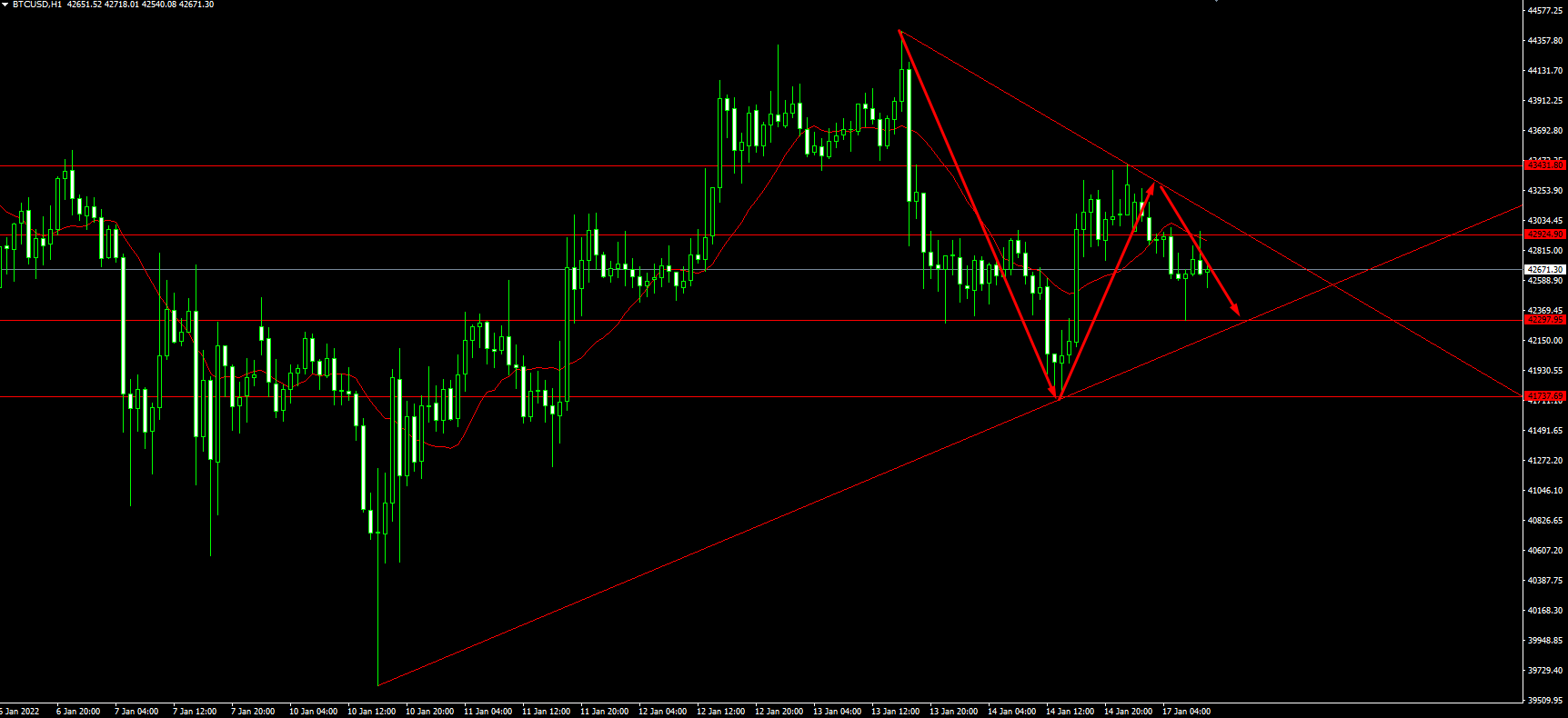 There is immediate support near the 50 percent Fib retracement level of the recent advance from the $41,800 swing low to the $43,791 high. On the hourly timeframe of the BTC/USD pair, a significant contracting triangle is emerging with resistance near $43,200.