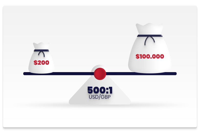 The Margin is the amount of money needed to open a position with leverage. A 1:500 leverage setting means that for every $1 that the trader inputs, the position size is amplified to $500. So, if a trader wants to open a position of $10,000 on the GBP/USD currency pair using leverage 1:500, the required margin will be $20.
