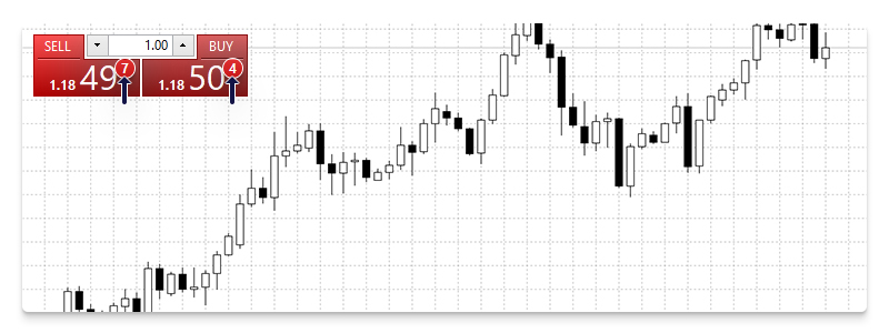 In CFD Trading, the spread is the difference between the ‘bid’ and ‘ask’ price of an asset.