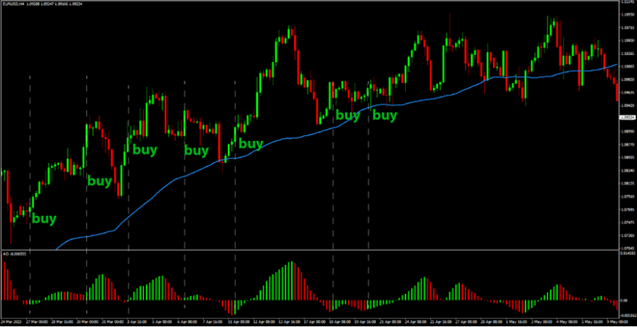 As the name implies, this strategy is mainly based on the Williams Awesome oscillator. The method is simple: we want to trade the signal (color) the Awesome oscillator shows. However, to maximize the accuracy of signals, we will only trade the signals of the Awesome Oscillator in the direction of the already established trend.