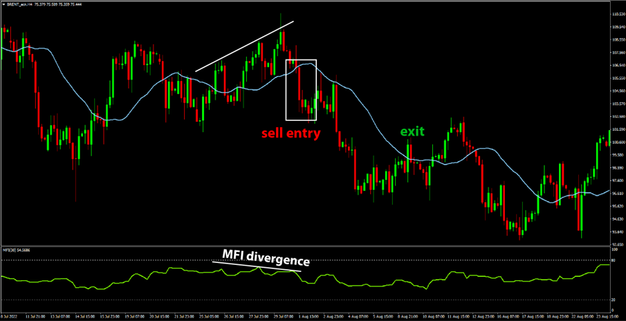 Divergence trading is a technique that focuses on the relationship between price action and the oscillator. Within the realm of divergence trading, the Money Flow Index (MFI) stands out as a reliable indicator for evaluating the strength of buying and selling pressure in the market. By incorporating the MFI into our strategy, we can effectively validate trend reversals and time our entries and exits more accurately.