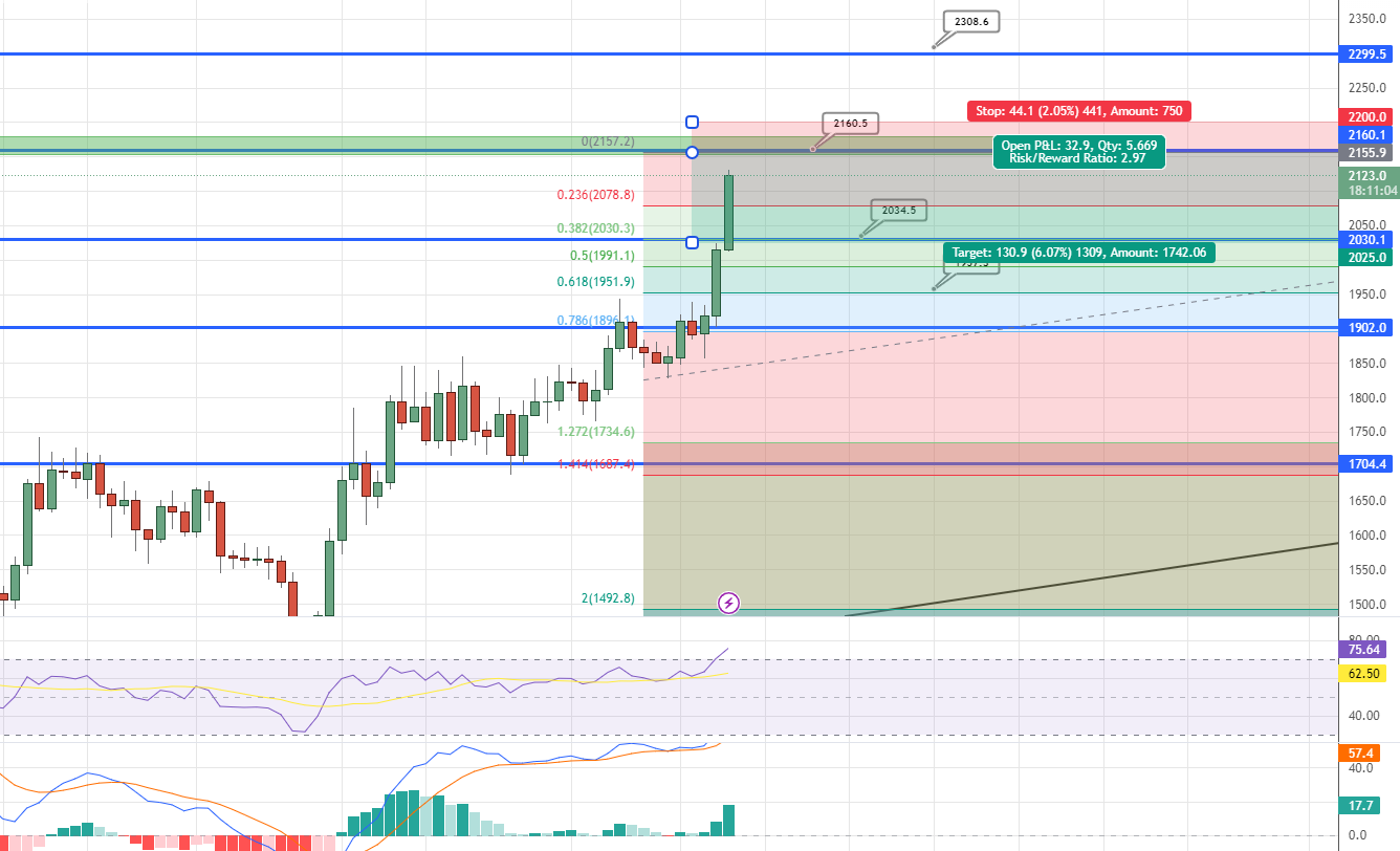 Ethereum's price rallied above the $2,000 resistance against the US dollar, surging over 10% with the potential to reach $2,200. After settling above the $1,900 resistance zone, Ethereum crossed a significant contracting triangle with resistance around $1,925 on the ETH/USD hourly chart.