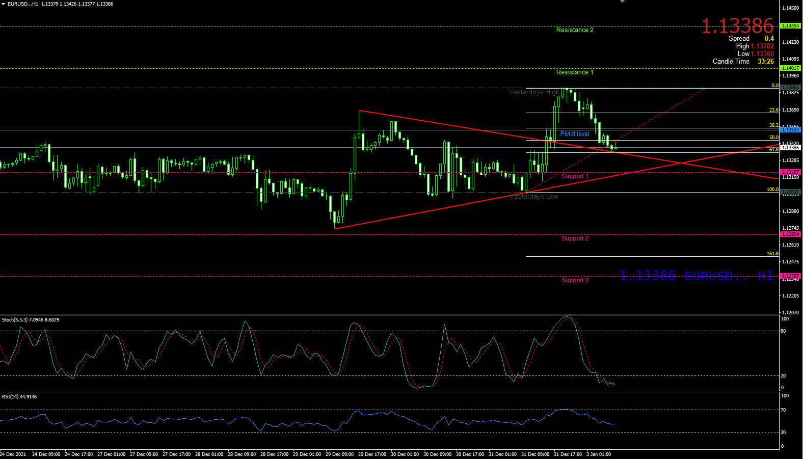 The EUR/USD pair ended the day at $1.1294 after reaching a high of $1.1381 and a low of $1.1279. The EUR/USD pair turned its momentum to the downside as it entered the New Year, mainly because of the strong US dollar. The US Dollar Index, which measures the greenback's value against a basket of six major currencies, hit a high of 96.33 on Monday. Meanwhile, the US Treasury yield on the benchmark 10-year note was also high as it reached 1.64% after surging by 12 basis points on a single day.