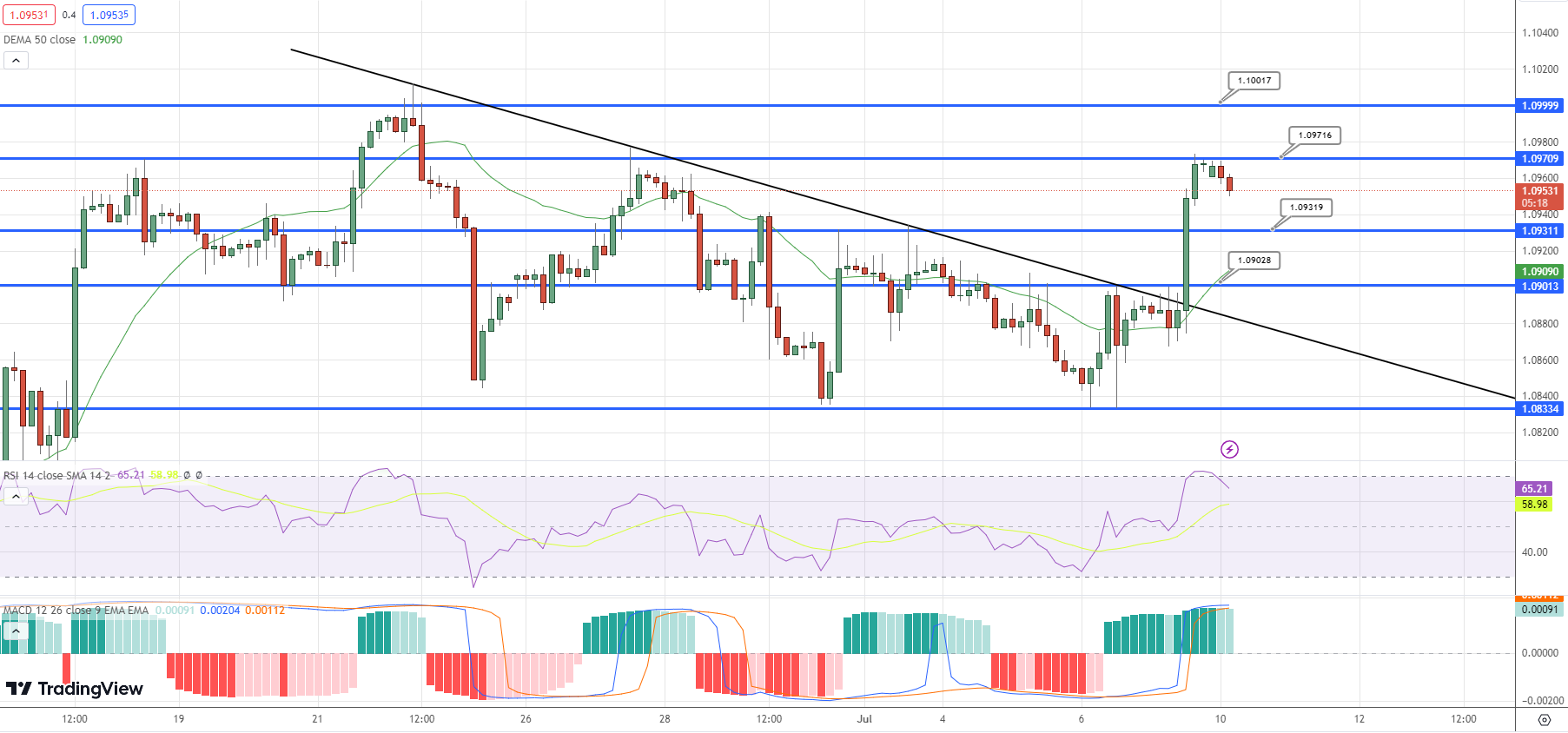 - Today's trading range: support at 1.0900, resistance at 1.1050.
