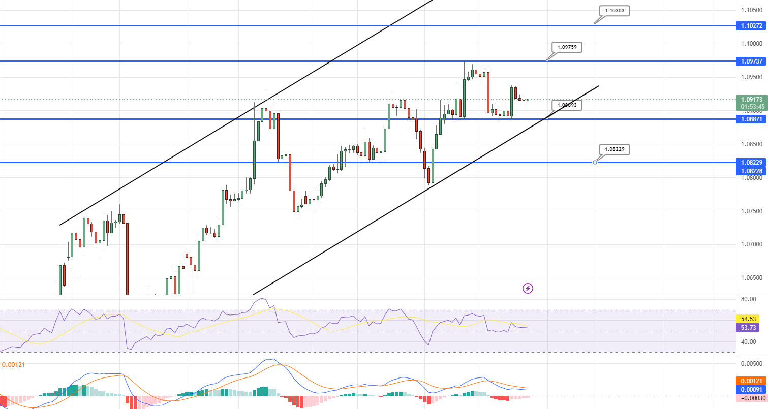 Today's anticipated trading range lies between a 1.0850 support level and a 1.1000 resistance level.