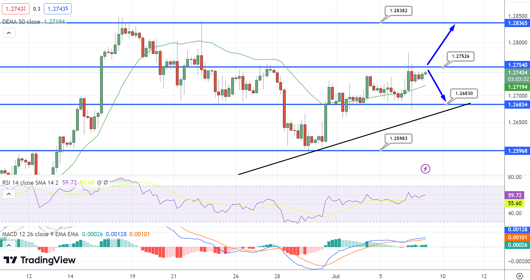 For today's trading, we anticipate the price to move within a range of support at 1.2640 and resistance at 1.2820.