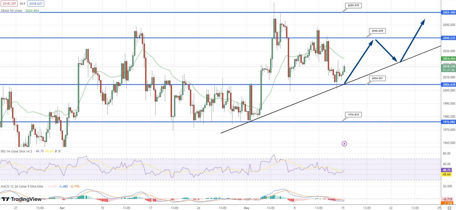 The projected trading range for today is expected to be between the support level of $1995.00 and the resistance level of $2025.00.