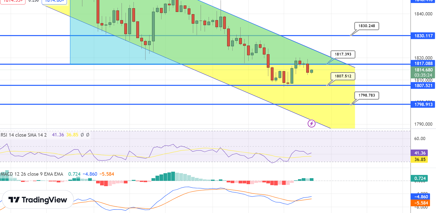 Although the RSI and MACD indicators are still showing selling momentum, the MACD histograms have been decreasing in size, indicating a weakening selling bias. Moreover, the 50-day simple moving average is situated around the $1,830 level, potentially serving as a resistance barrier to any upward movement.