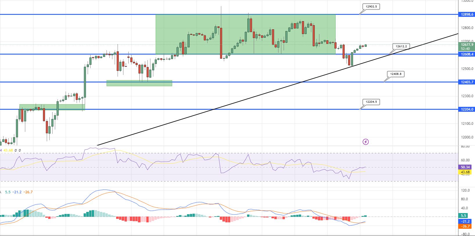 On the upside, the immediate resistance prevails around the 12,800 level, and a bullish break above this particular level can expose the NASDAQ price towards 12,950.