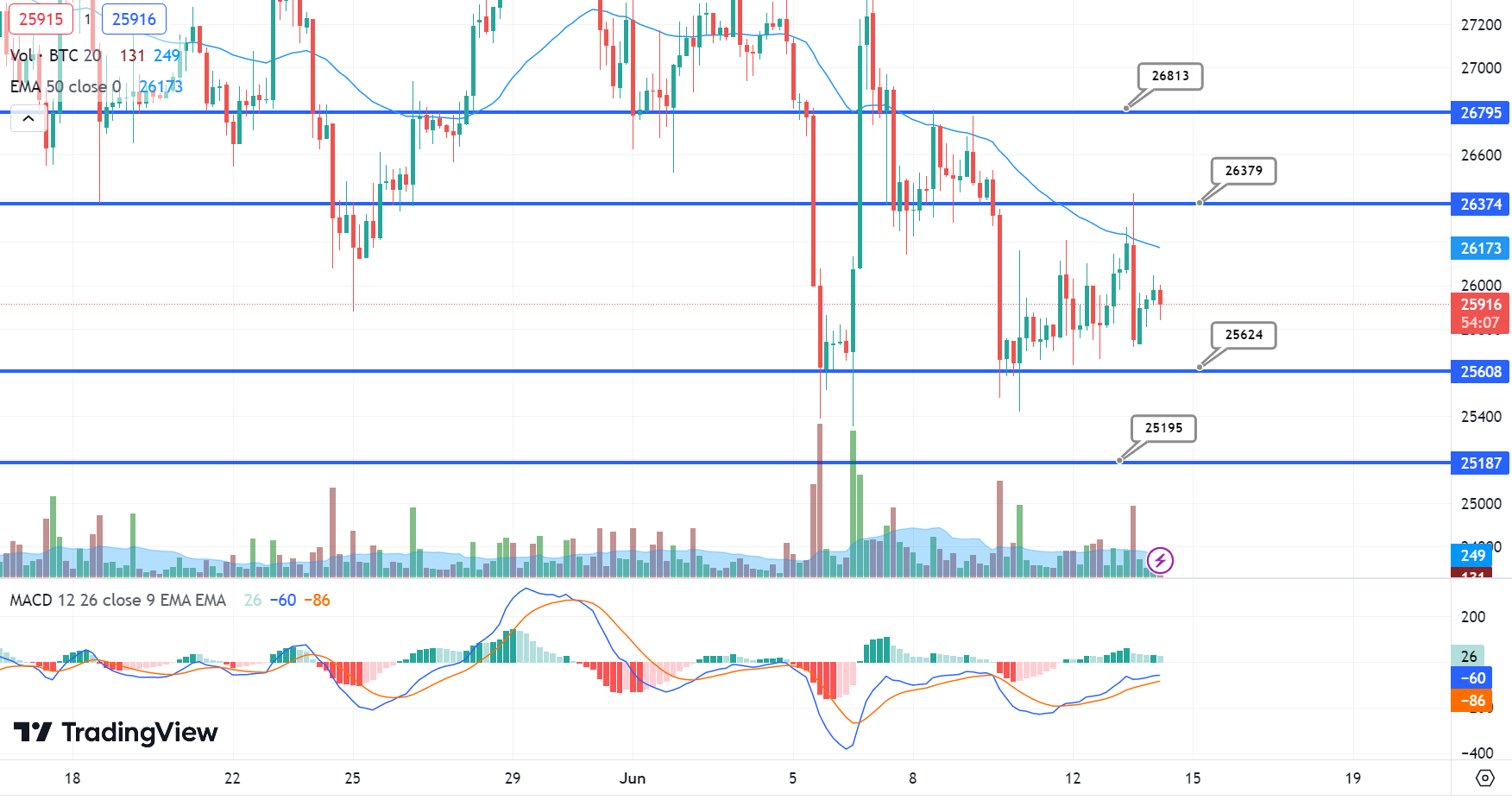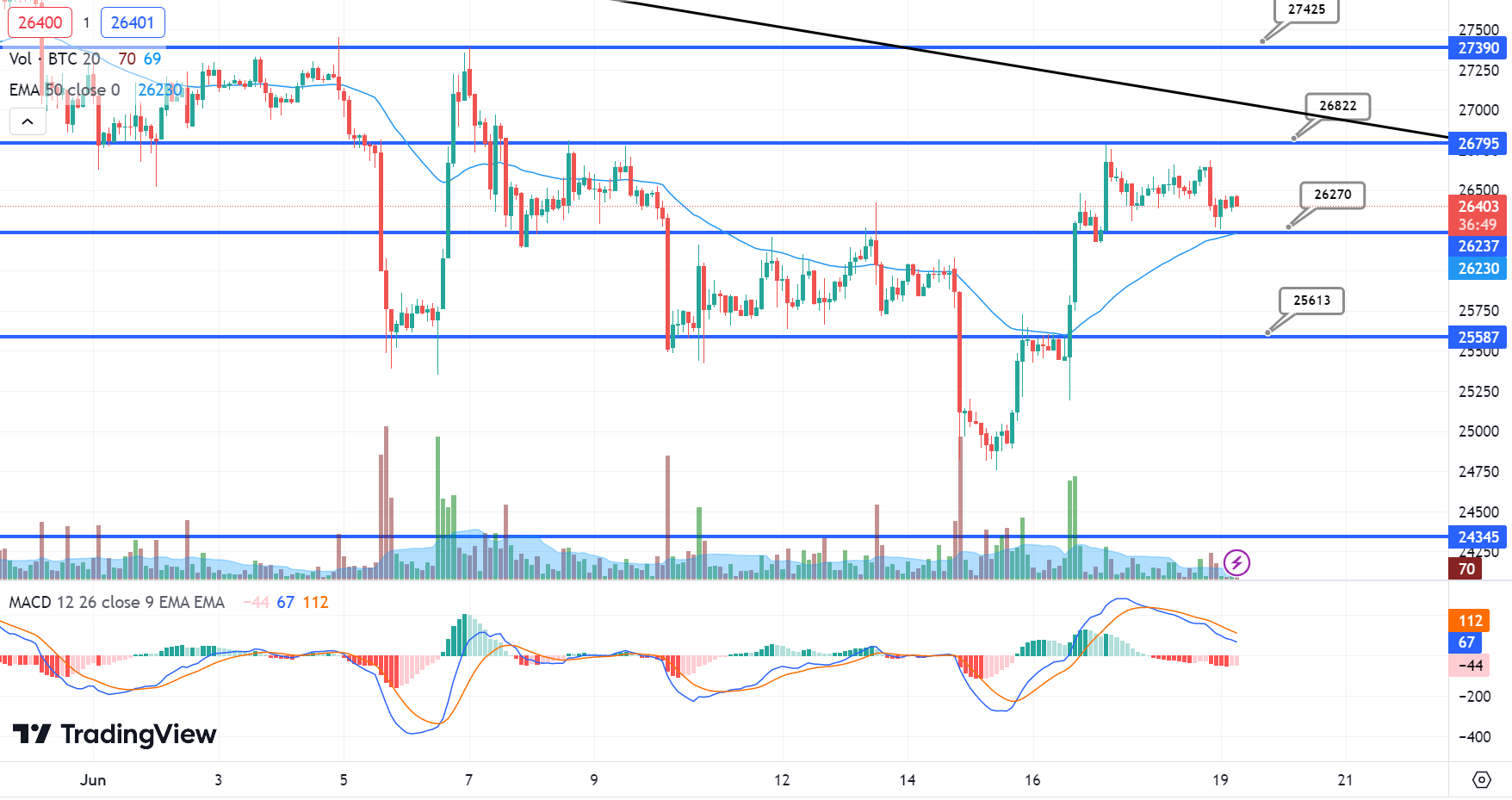 If Bitcoin manages to hold above the $26,200 level, it could set its sights on resistance levels at $26,000 and $27,400. Breaking through the resistance at $26,500 is crucial for further upward movement.
