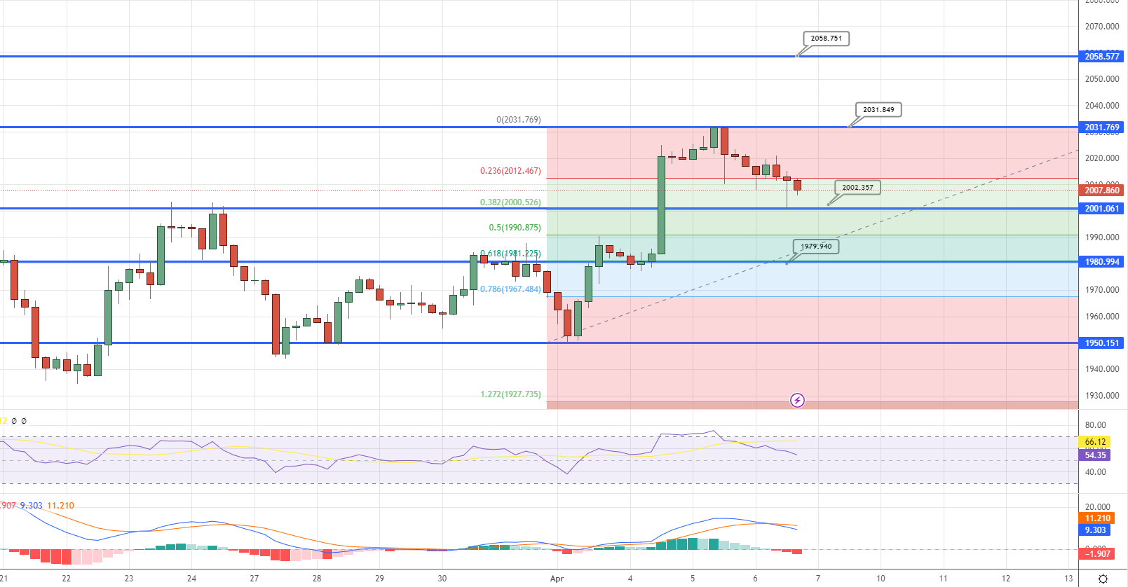 Our next target is set at $2,040.00, as we anticipate further increases in the short term and intraday basis.