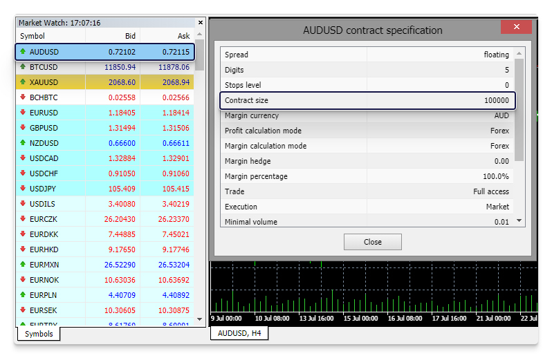If we use AUD/USD currency pair as a case study, this instrument would contain a contract size of 100,000 units.